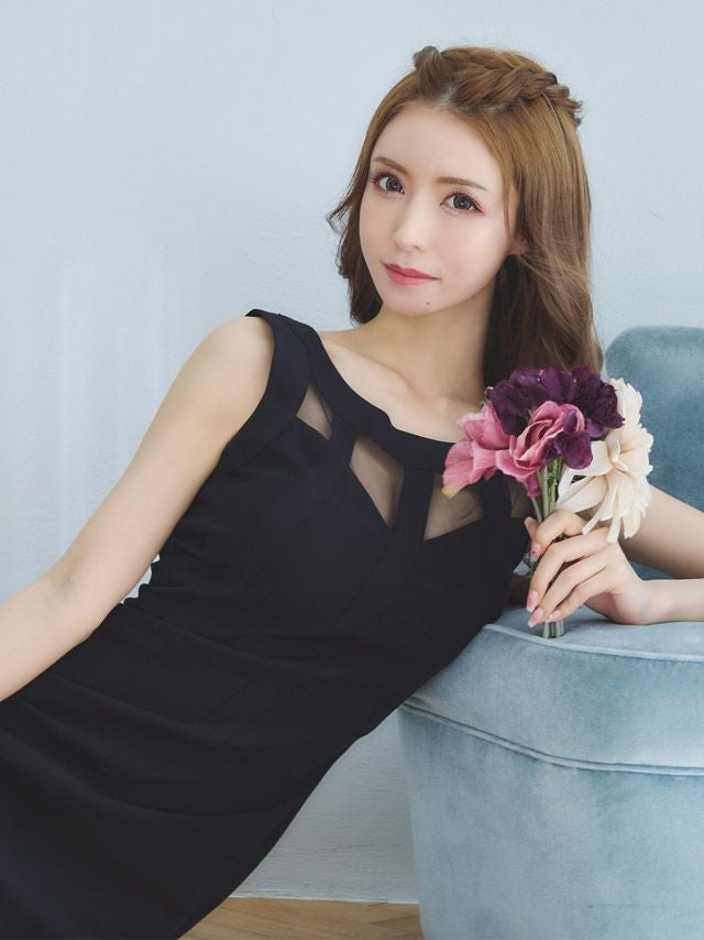 4. [韓国ドレス] タイト膝丈ドレス ノースリーブ デコルテシースルー ワンカラー 大人 (Sサイズ~Lサイズ) (一条響着用) [Anella]