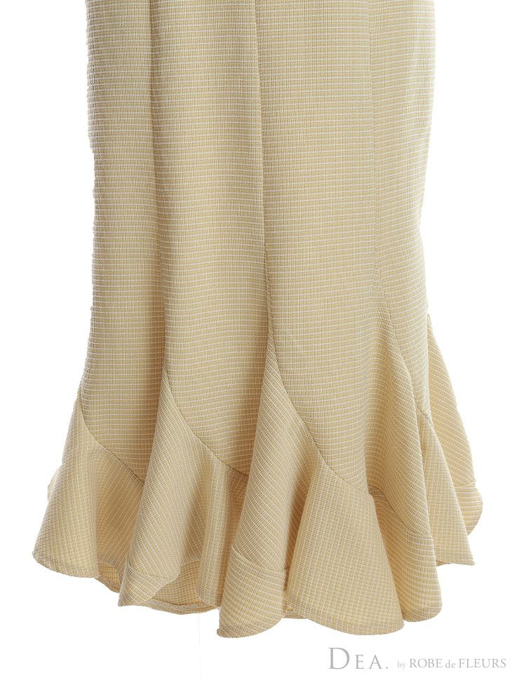 5. [DEA.byROBEdeFLEURS/ディアバイローブドフルール] 高級ワンカラーショルダーリボンマーメイドフリルノースリーブワンピースタイト膝丈ドレス
