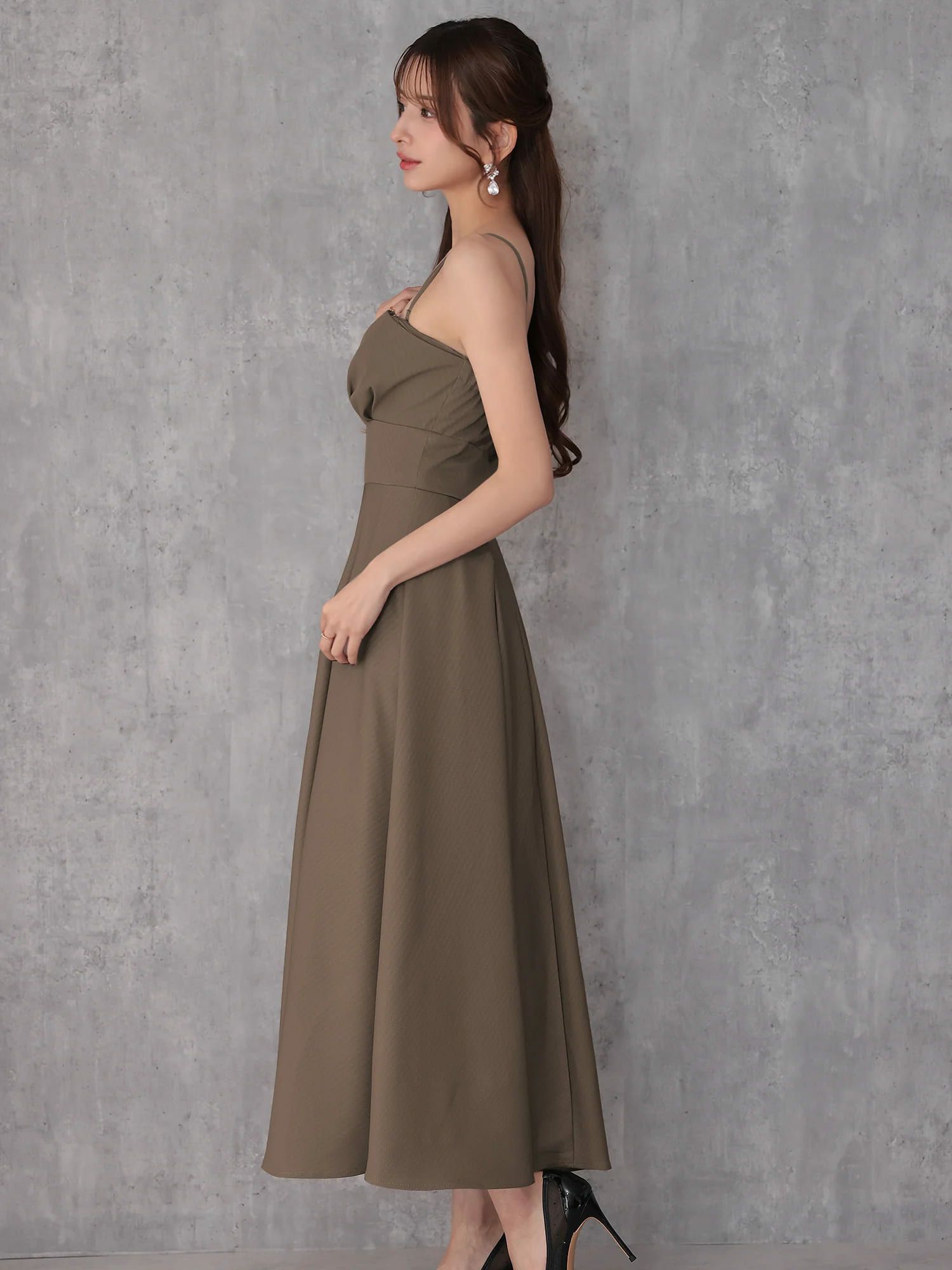 3. [Veautt/ヴュート] 高級 ブランド Aライン膝丈ドレス ベア キャミソール 2way ワンカラー 大人 ウエストマーク バストタック