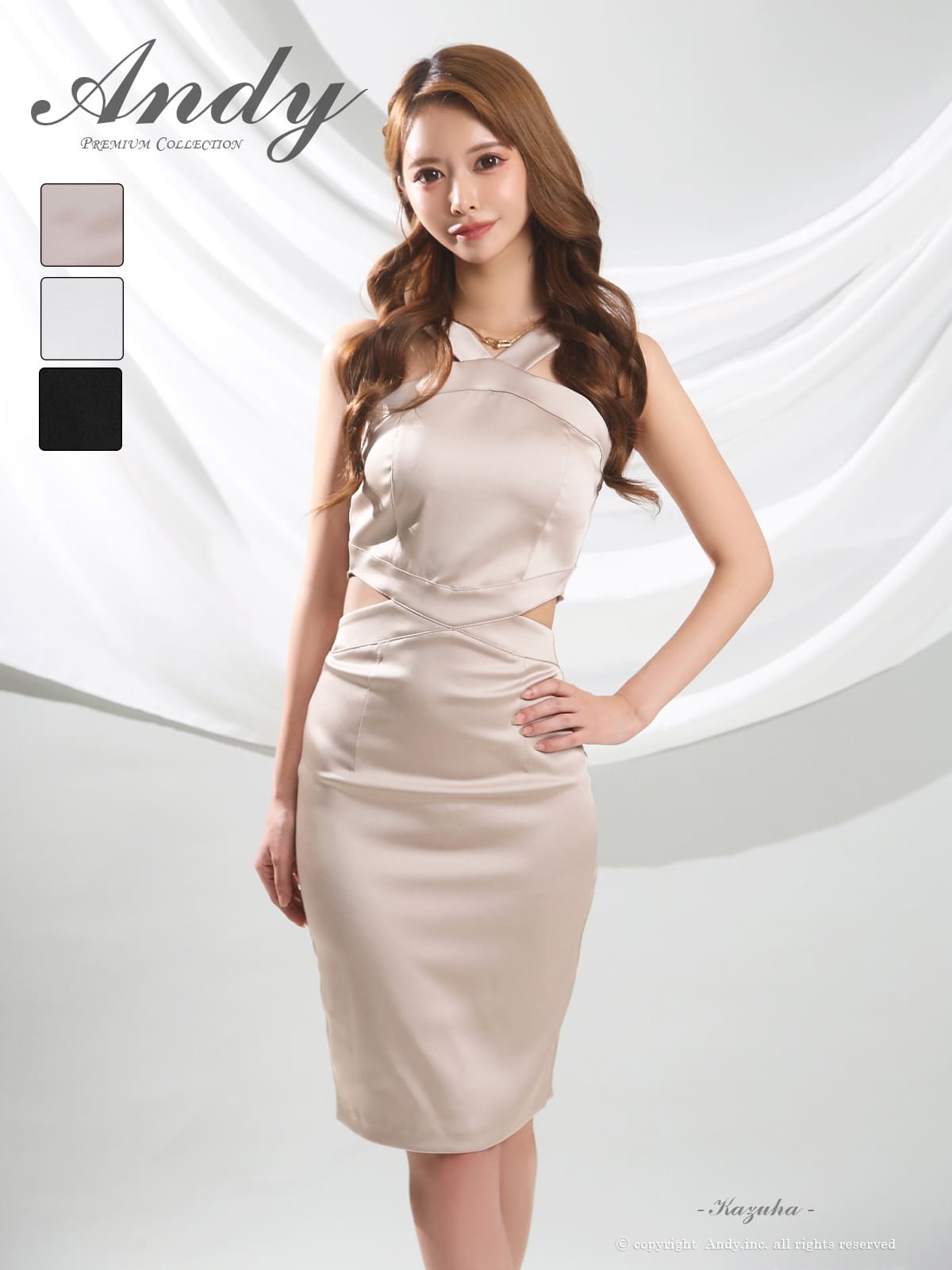 他の画像を見る ウエスト部分のカットがセクシーに惹きつける♡ [Andy/アンディ] 高級 ノースリーブ 膝丈ドレス サテン ウエストカット ワンカラー タイトミニドレス ¥ 27,500 税込 お気に入りに追加