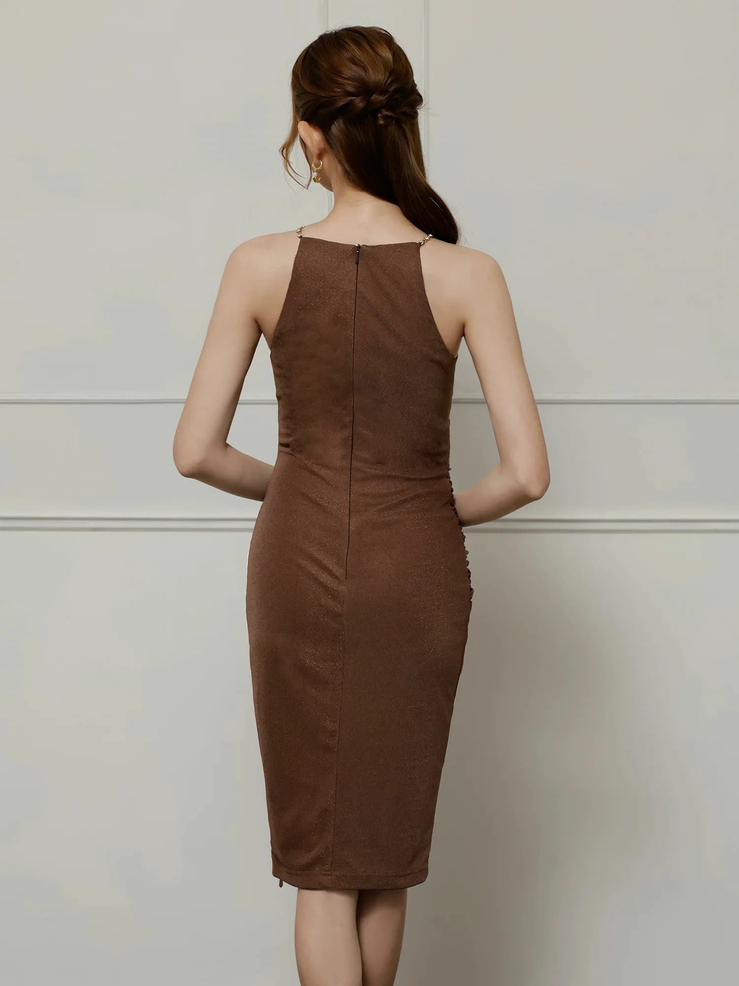 他の画像を見る 引き締まったくびれをメイク♡ 予約商品【4月中旬入荷予定】[Veautt/ヴュート] 高級 ブランド タイト膝丈ドレス ホルターネック ギャザートップ ウエストタックデザイン ネックチェーン ビジュー (伊藤舞雪着用) ¥ 31,680 税込 お気に入りに追加