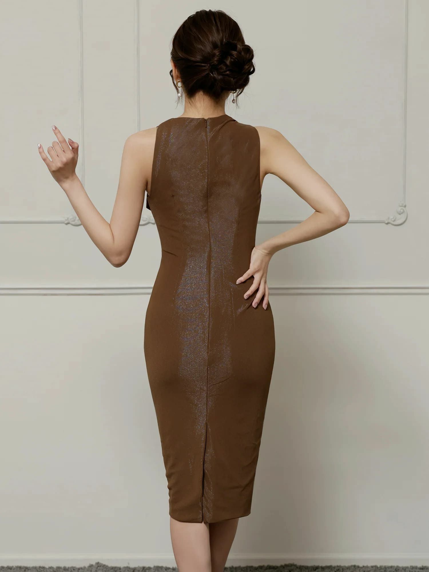 他の画像を見る 煌めくリングが目を惹く♡ [Veautt/ヴュート] 高級 ブランド タイト膝丈ドレス ホルターネック ジップスリット リング 大人 ワンカラー ¥ 29,480 税込 お気に入りに追加