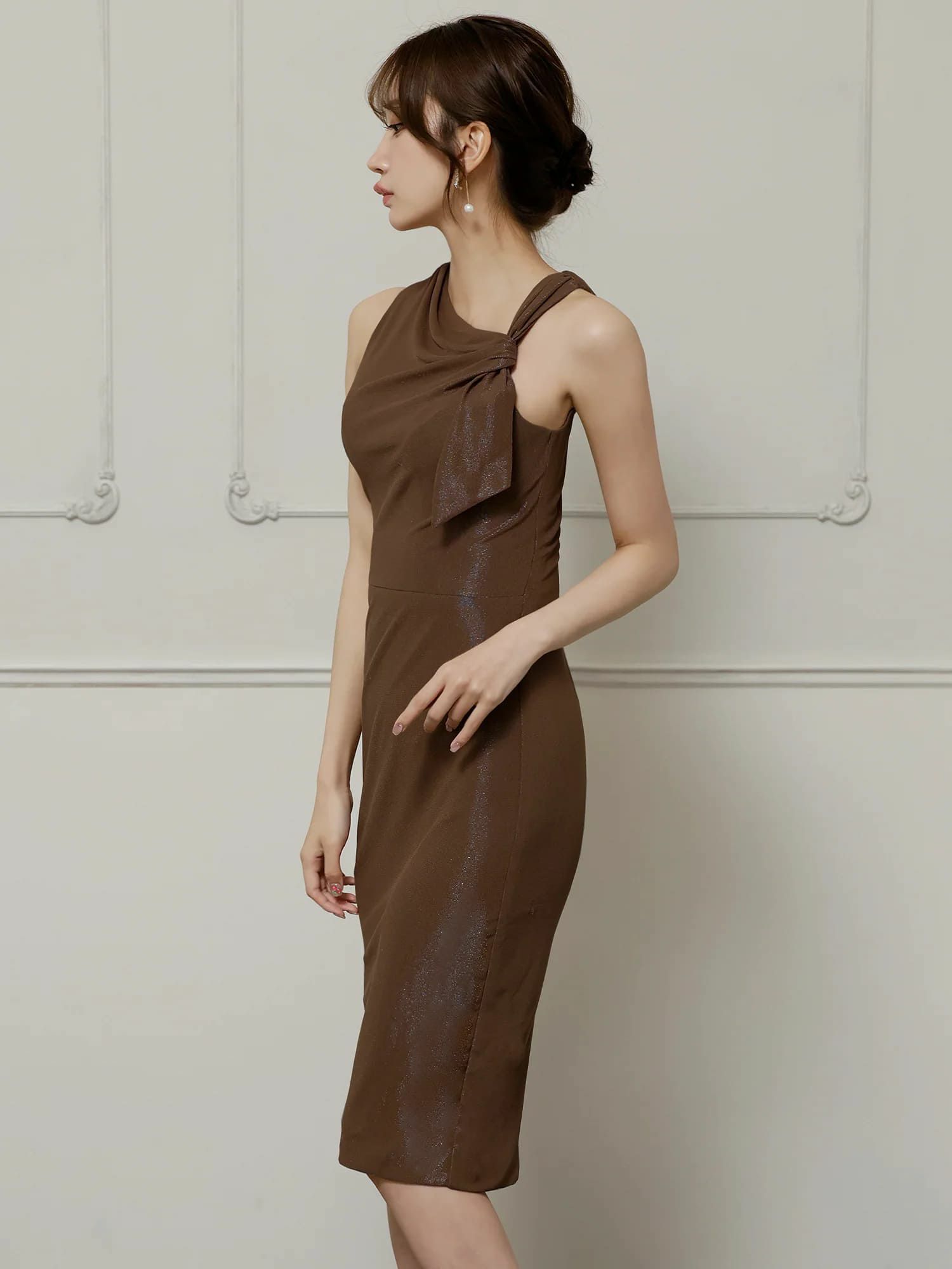 他の画像を見る 大人の気品溢れる1着♡ [Veautt/ヴュート] 高級 ブランド タイト膝丈ドレス ノースリーブ アシンメトリー リボン ラメ (ゆんころ着用) ¥ 28,380 税込 お気に入りに追加
