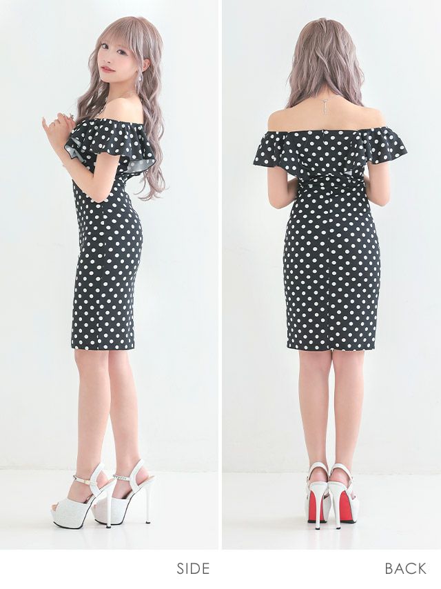 4. [ゲリラセール] 安い タイト膝丈ドレス ホステス オフショルダー 大きいサイズ シンプル 大人 ノースリーブ ストレッチ ブラジャーのまま 2way (向葵まる着用)