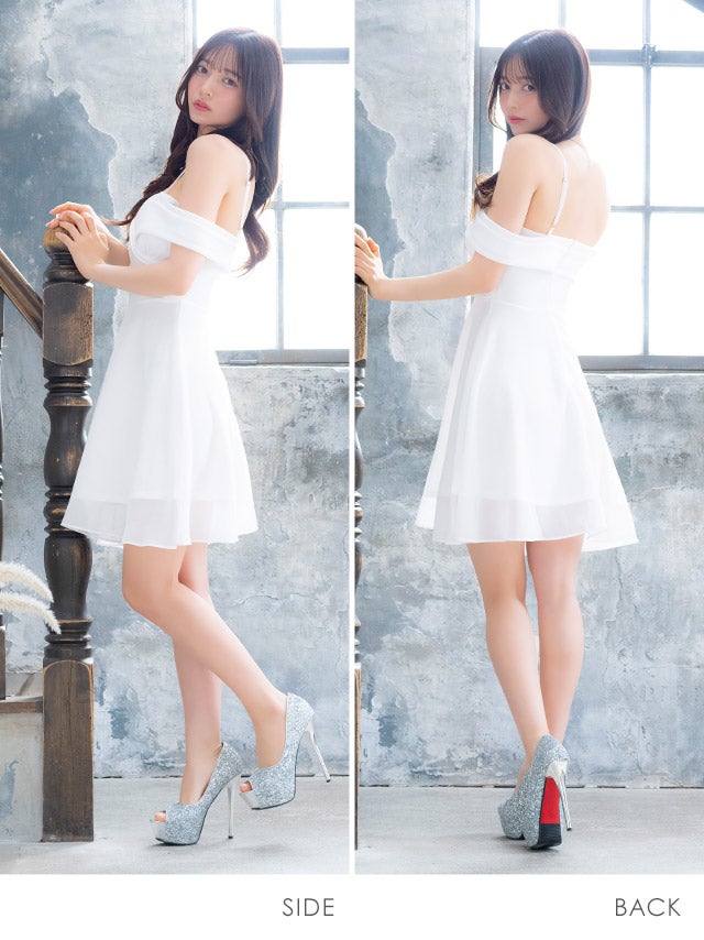 綺麗でセクシーにデコルテ強調オフショルミニドレス