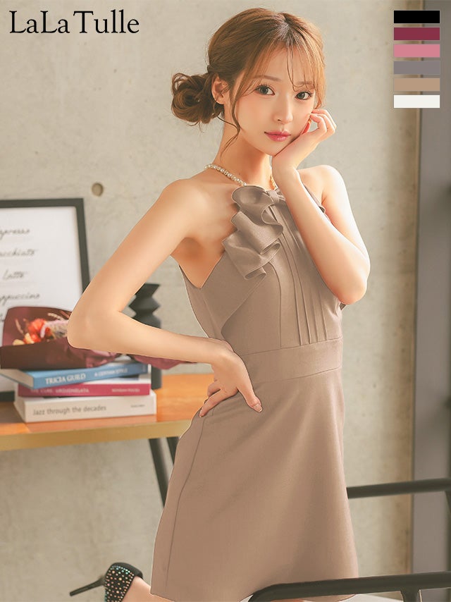 5. 予約商品【4月中旬入荷予定】[Angel-R/エンジェルアール] 高級 ブランド Aラインミニドレス キャミソール フリルリボン パールショルダー 胸元カバー ワンカラー (れむ着用)