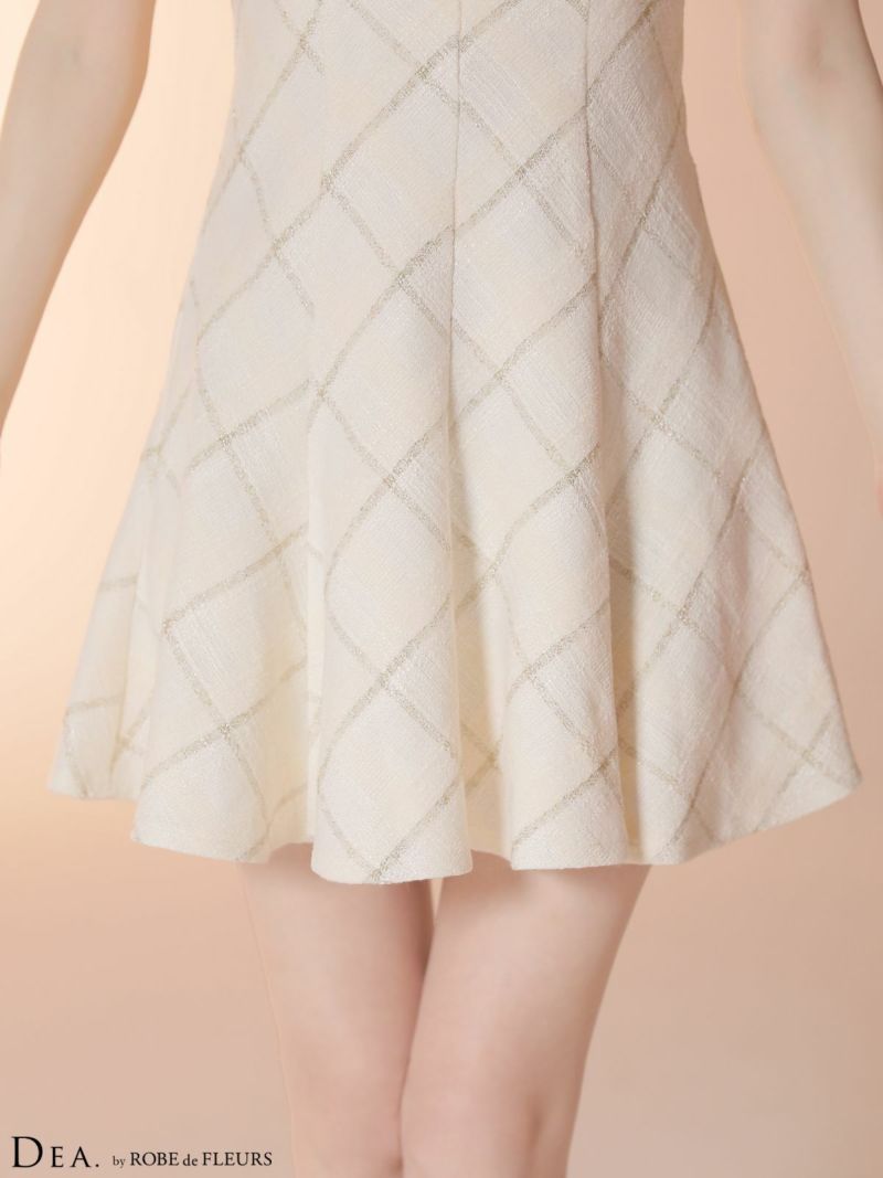 4. [DEA.byROBEdeFLEURS/ディアバイローブドフルール] 高級 ブランド ワンピース Aラインミニドレス ノースリーブ チェック柄 ツイード 大人