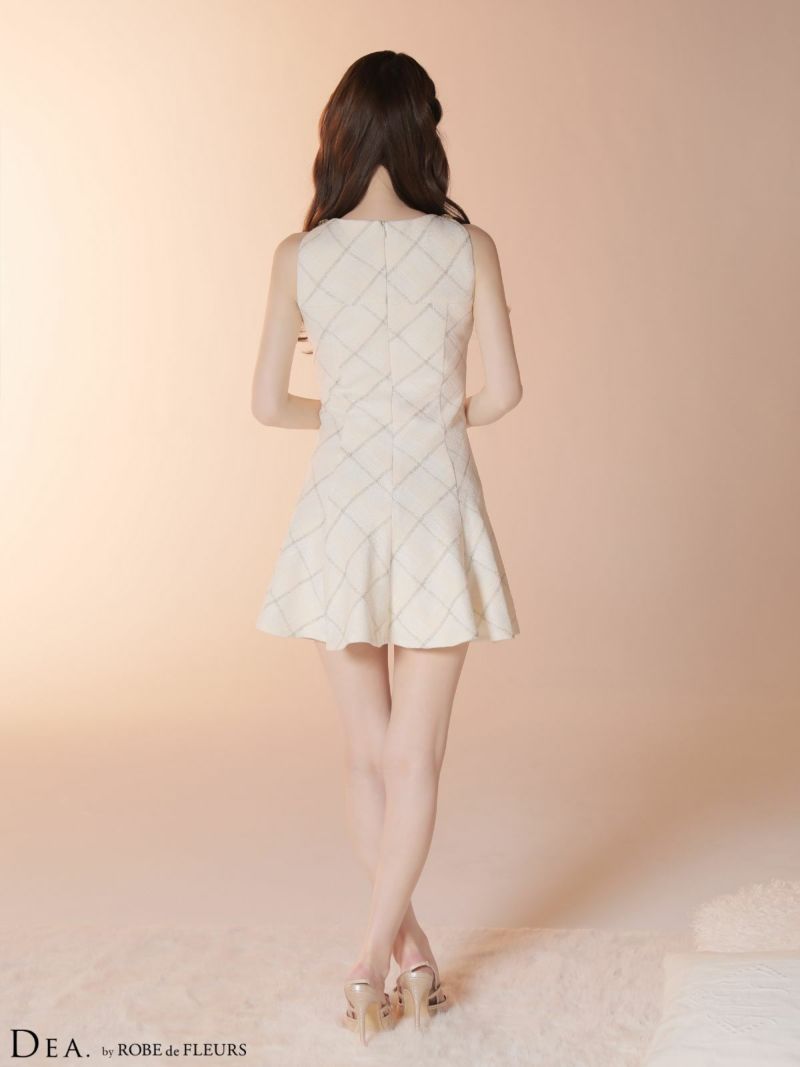 5. [DEA.byROBEdeFLEURS/ディアバイローブドフルール] 高級 ブランド ワンピース Aラインミニドレス ノースリーブ チェック柄 ツイード 大人