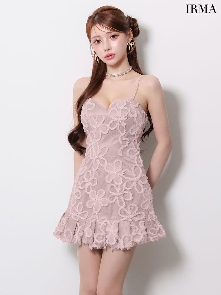 5. 予約商品【7月中旬入荷予定】[IRMA/イルマ] 高級 ブランド Aラインミニドレス 谷間 キャミソール 花柄レース プリーツ