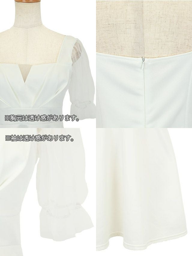 女の子らしいシルエットをメイク♪ 半袖シースルーパフスリーブハイウエスト切替フレアミニドレス (なぎ着用)