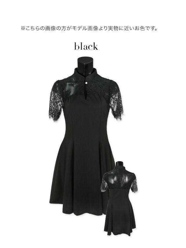 デコルテレース半袖Aラインフレアミニドレスのカラーバリエーション