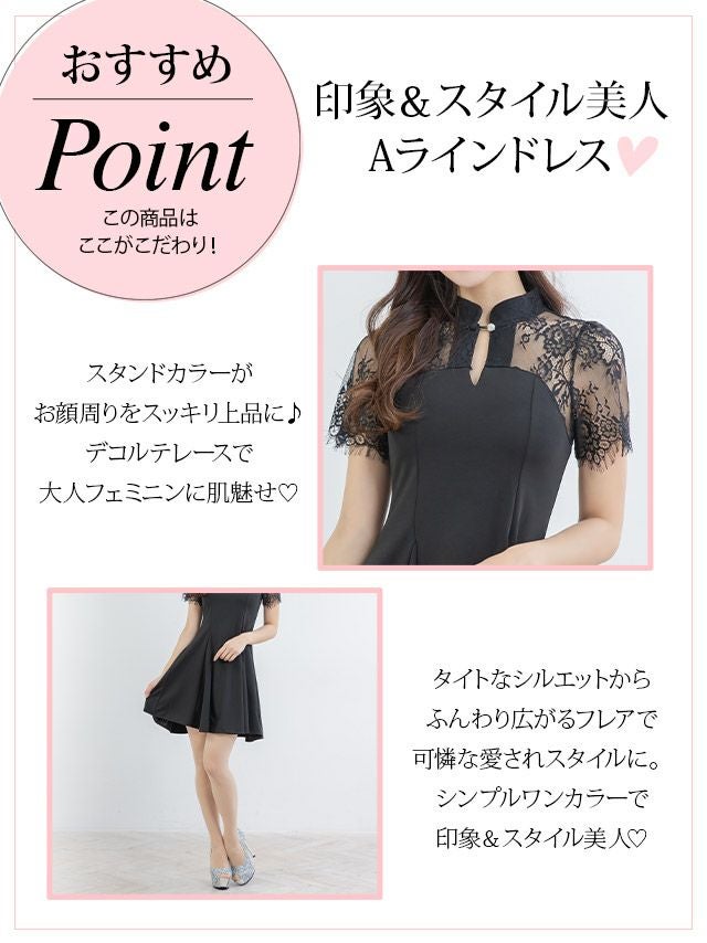 デコルテレース半袖Aラインフレアミニドレスの特徴