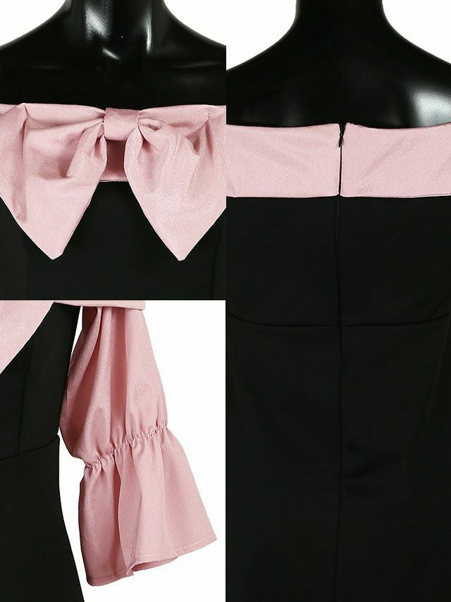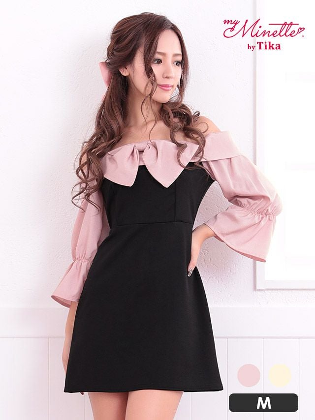 リボン七分袖オフショルミニドレス リボン七分袖オフショルミニドレス