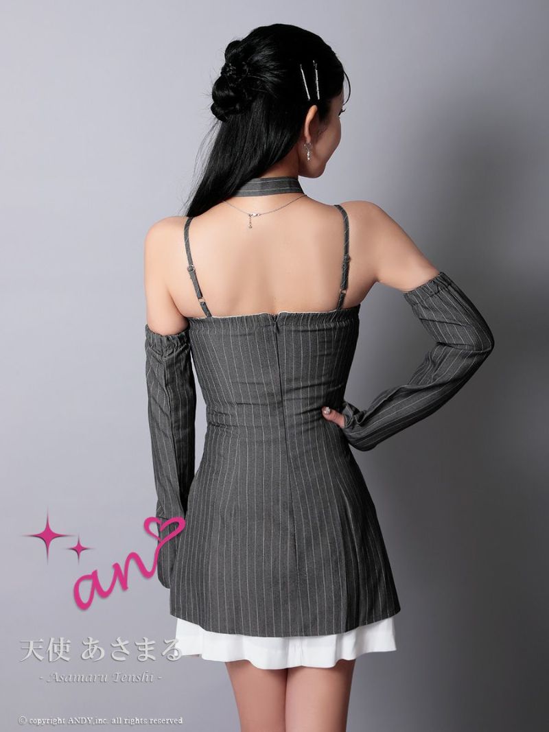 気になる二の腕も可愛くカバー♡ [an/アン] 高級 ブランド ミニドレス キャミソール Aライン スリーブ ネクタイ付き ボーダー 2way プリーツスカート キャバドレス [andy-md-aoc3959]
