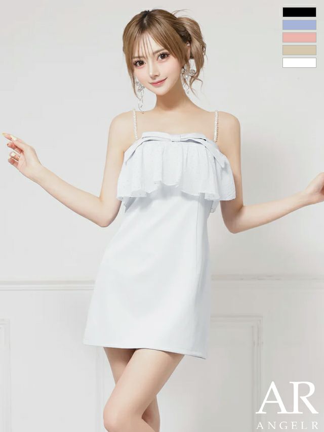 キャバドレス ミニドレス Angel-R エンジェルアール 高級 2way ベアトップ キャミソール パールチェーン フリル リボン ビジュー フレアミニドレス