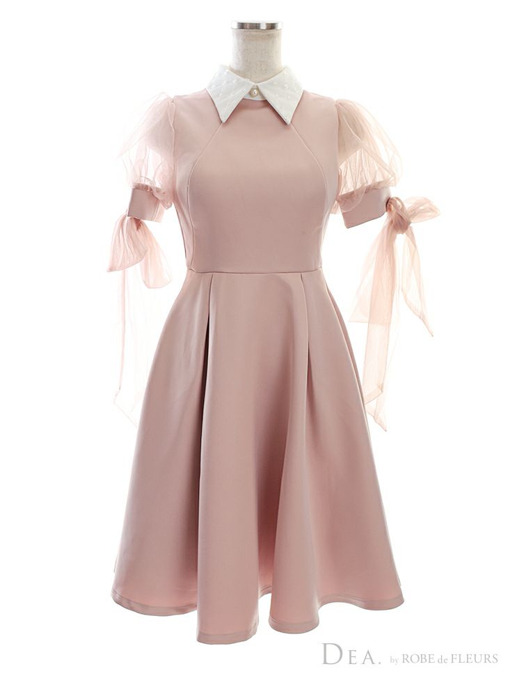 キャバドレス ミニドレス [SALE] DEA.byROBEdeFLEURS ディアバイローブドフルール 高級襟付きチュール半袖リボン膝丈Aラインワンピースドレス