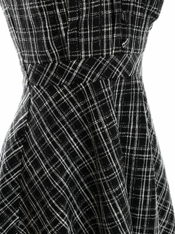 5. [DEA.byROBEdeFLEURS/ディアバイローブドフルール] 高級ノースリーブVネックチェック柄ツイードフレア膝丈ワンピースドレス