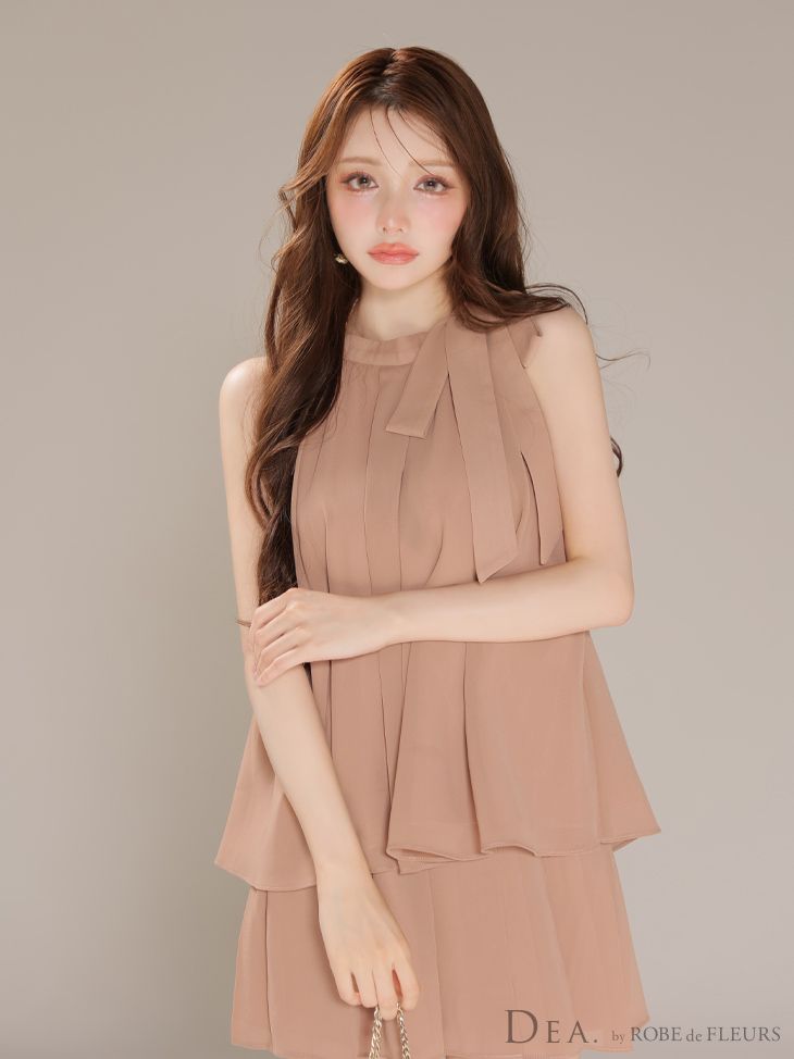 5. [DEA.byROBEdeFLEURS/ディアバイローブドフルール] 高級 ブランド Aラインミニドレス セットアップ ノースリーブ シフォン 胸元カバー シンプル