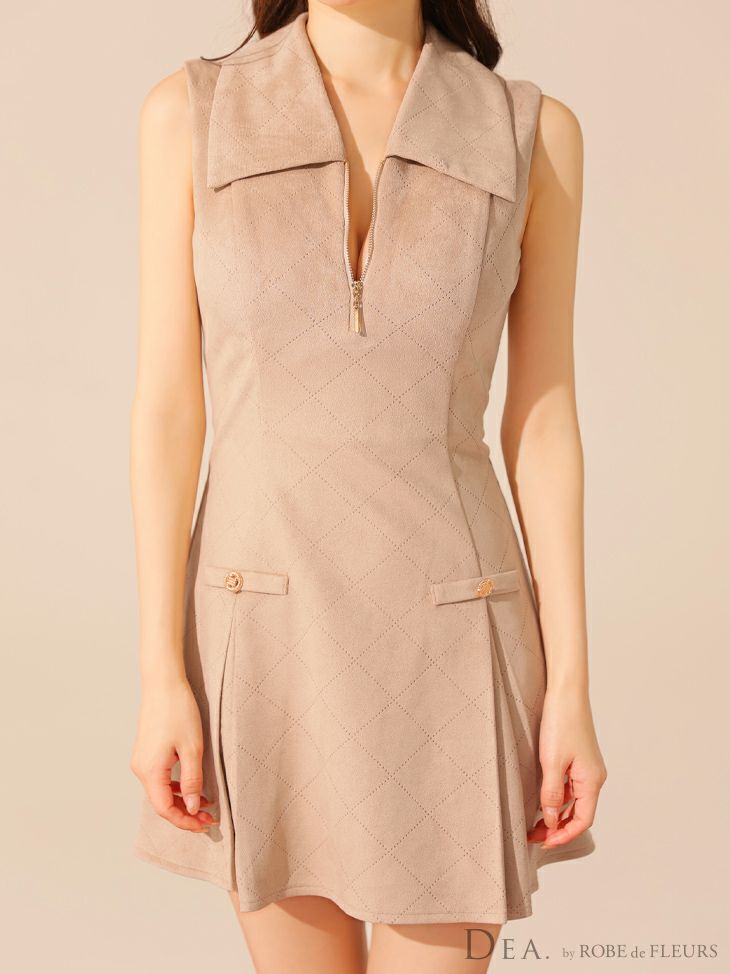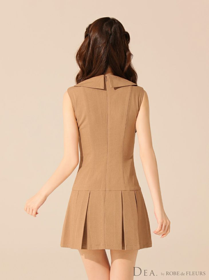 ふんわりシフォンが女性らしさ溢れる♡ 予約商品【6月中旬入荷予定】[DEA.byROBEdeFLEURS/ディアバイローブドフルール] 高級 ブランド Aラインミニドレス セットアップ ホルターネック シフォン フリル 胸元カバー レイヤード プリーツ