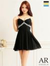 大胆な谷間見せで色気アピール☆ [Angel-R/エンジェルアール] 高級キラキラパールビジューキャミソールバストギャザーフレアミニドレス