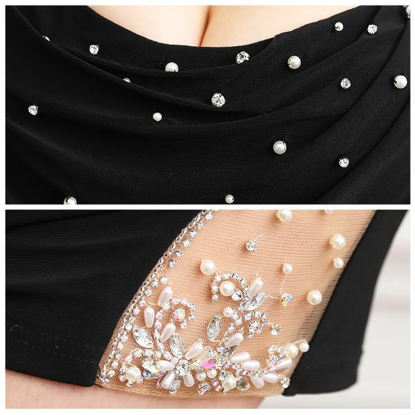 5. [Angel-R/エンジェルアール] 高級ドレープパールビジューキャミソールタイトミニドレス