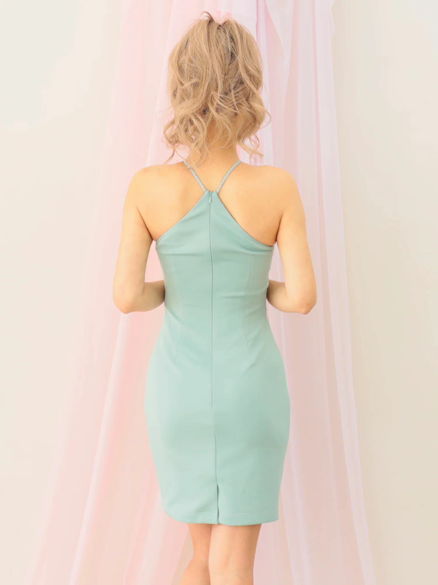 4. ホルターネックの高級ミニドレス