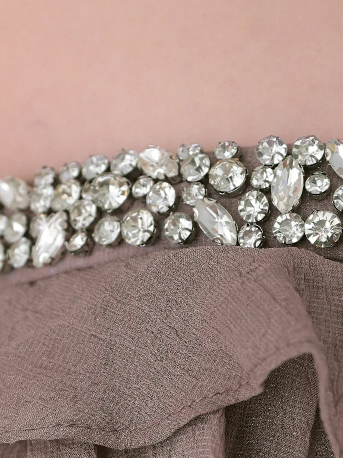 5. [Angel-R/エンジェルアール] 高級 ベアトップ フリル ビジューライン ワンカラー タイトミニドレス