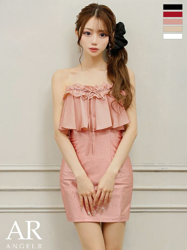 キャバドレス ミニドレス Angel-R エンジェルアール 高級 2way ベアトップ チェーンキャミソール リボン ビジュー バストフリル タイトミニドレス