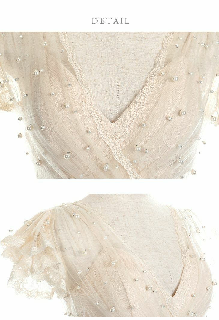 素材 レース、パール付きチュール、ポンチ