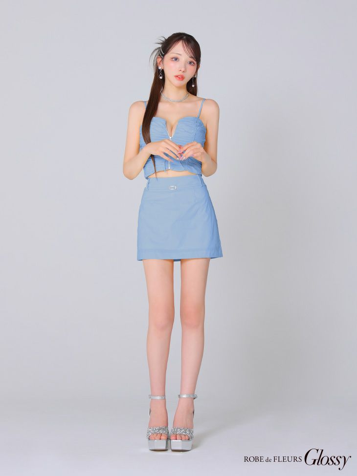5. SALE [ROBEdeFLEURSGlossy/ローブドフルールグロッシー] 高級シャーリングキャミソールセットアップジップウエストベルトタイトミニドレス