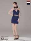 5. [ROBEdeFLEURSGlossy/ローブドフルールグロッシー] 高級 ホルターネック セットアップ リボン ラメ入り ワンカラー バストカット 谷間魅せ タイトミニドレス