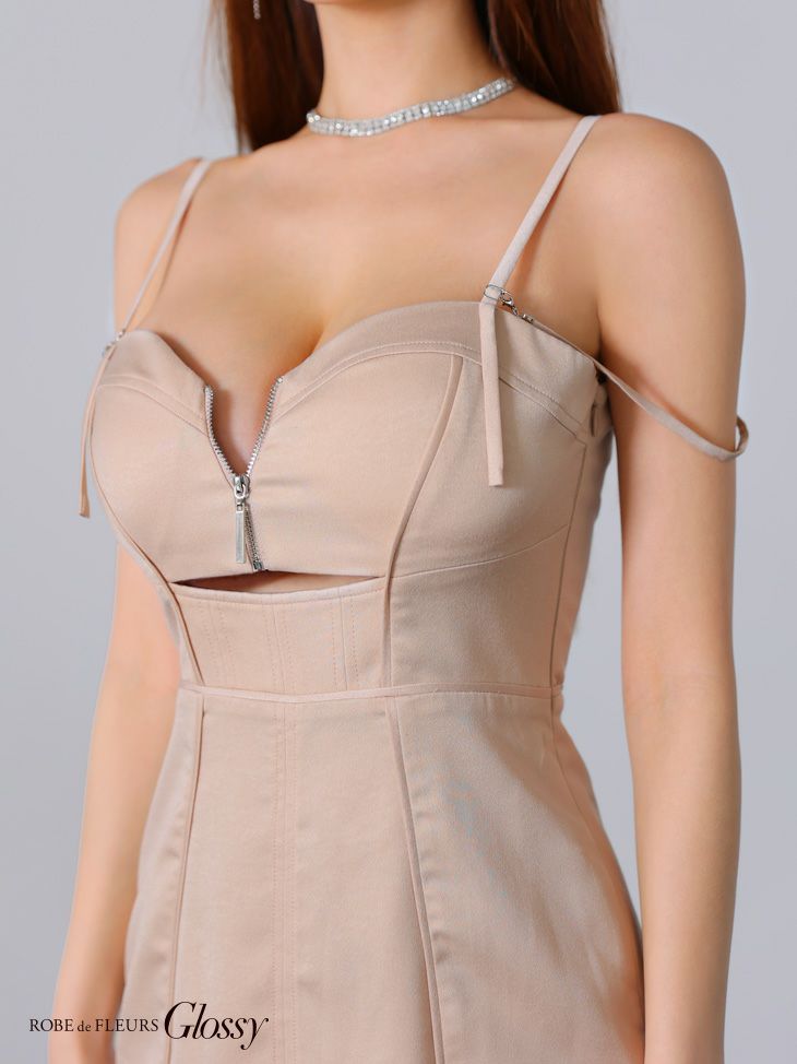 キャバドレス ミニドレス ROBEdeFLEURSGlossy ローブドフルールグロッシー 高級キャミソールウエストカットジップフェイクスエードタイトミニドレス
