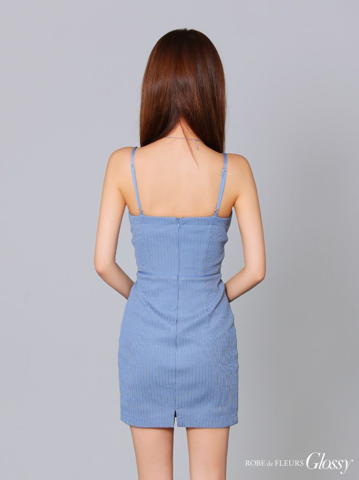 キャバドレス ミニドレス ROBEdeFLEURSGlossy ローブドフルールグロッシー 高級キャミソールウエストカットフロントレースリボンリブタイトミニドレス