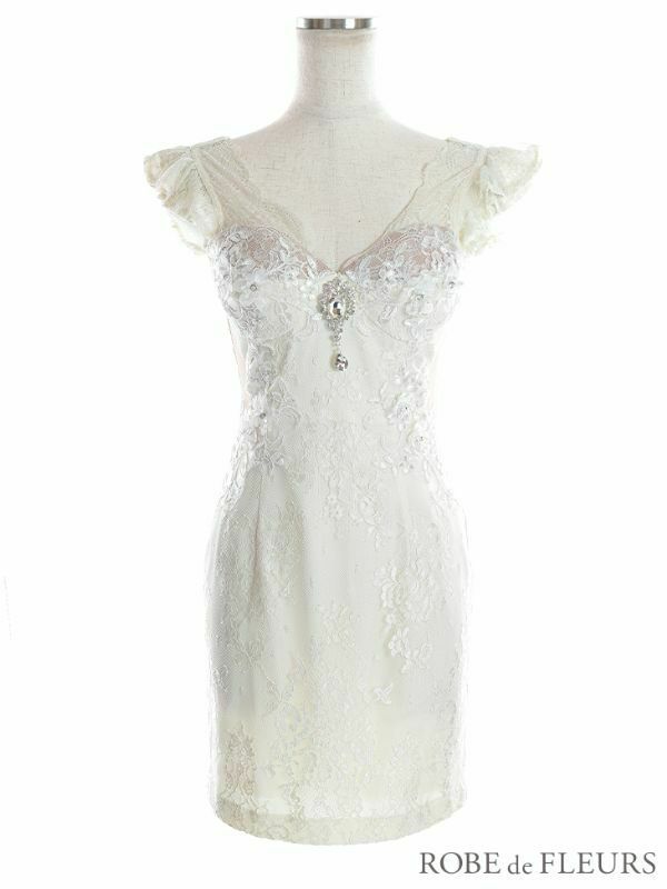 5. [ROBEdeFLEURS/ローブドフルール] 高級総レースビジューくびれタイトミニドレス