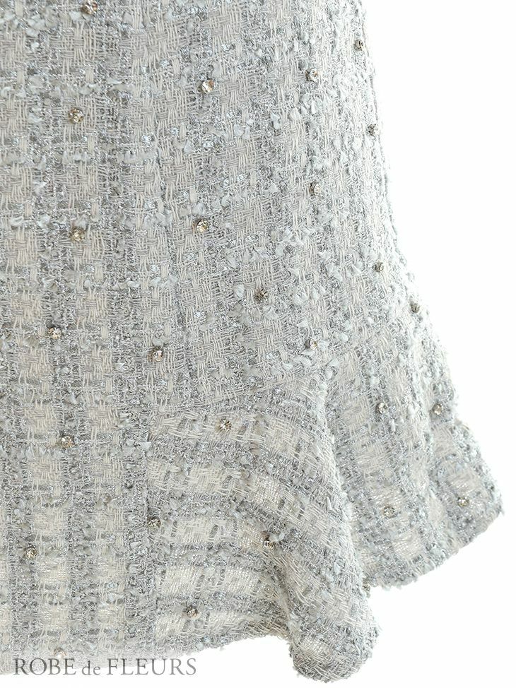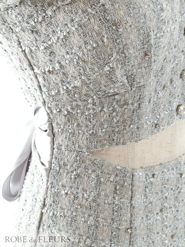 4. [ROBEdeFLEURS/ローブドフルール] 高級ラメツイードリボンフリルスリーブタイトミニドレス