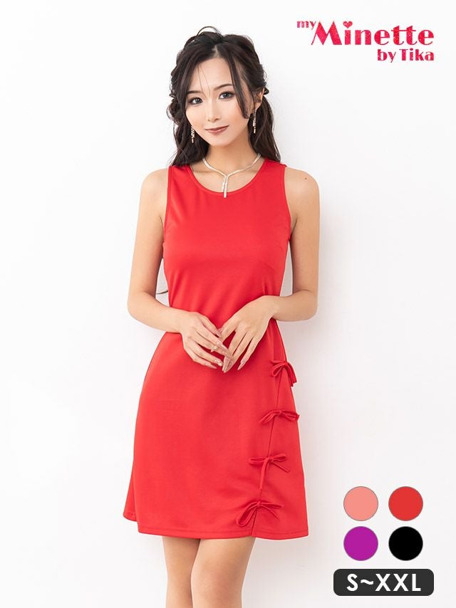 キャバドレス myMinette マイミネット ノースリーブ リボンライン シンプル ワンカラー タイト ミニドレス