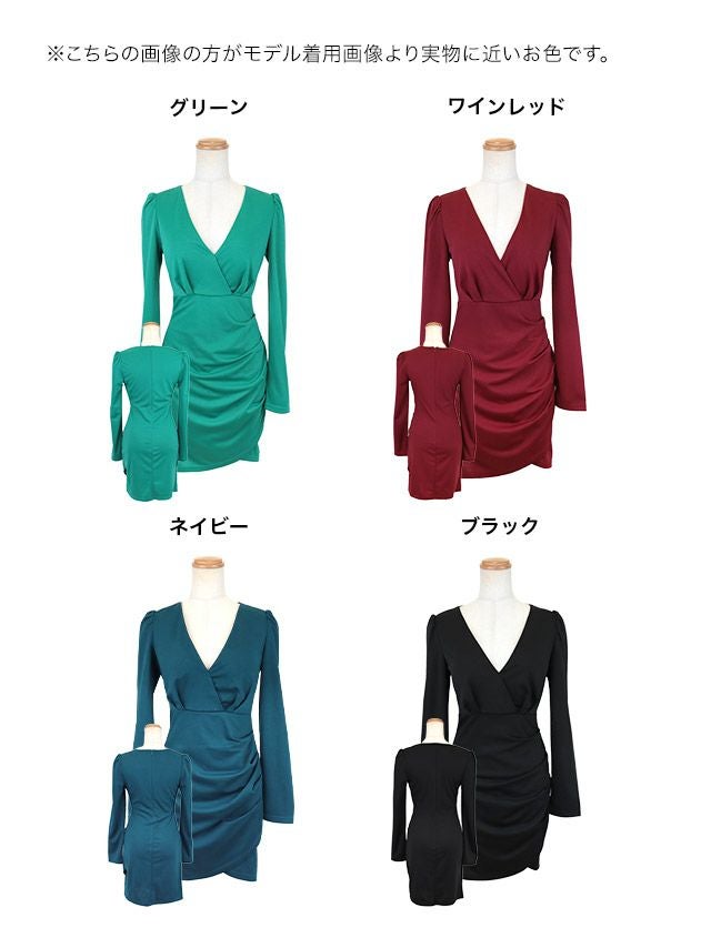 5. ワンピース 安い タイトミニドレス 長袖 袖あり大人 上品 ストレッチ ギャザー入り ワンカラー 裾ラップ (ちぴたん着用)