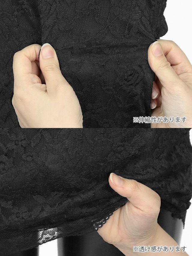 360度どこから見てもセクシー◎ 安い タイトミニドレス 長袖 ホステス シンプル レース 大人 上品 背中魅せ 胸元カバー ハイネック ストレッチ (せいせい着用)