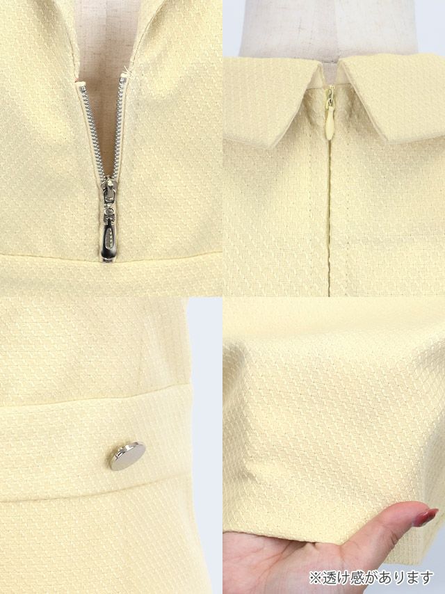 タイトミニドレス 谷間 シンプル 大人 ノースリーブ 上品 ツイード バストジップ 襟付きのカラーバリエーション