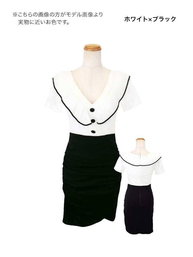 韓国ドレス ミニドレス パイピングフリル 襟付き ウエスト切替 ラップギャザー タイト キャバドレスのカラーバリエーション