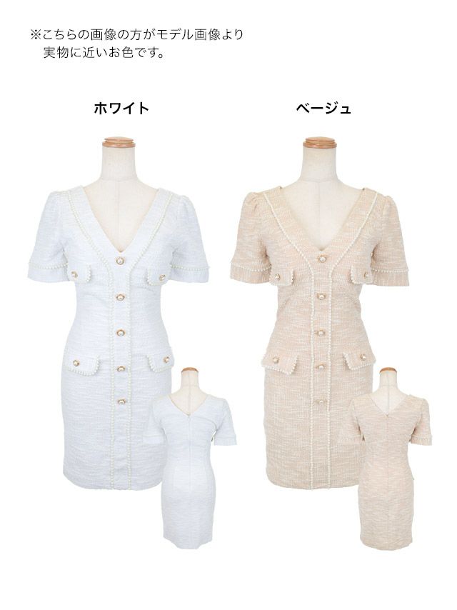 韓国ドレス ミニドレス ストレッチニット Vネック パールボタン 半袖 タイト キャバドレスのカラーバリエーション