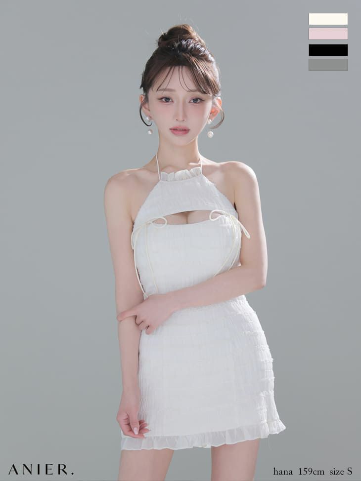 人気ドレスから新色登場♪ 予約商品【4月中旬入荷予定】[Angel-R/エンジェルアール] 高級 ホルターネック フラワービジュー くびれ バストカット 谷間魅せ タイトミニドレス
