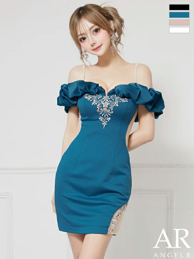 オフショルダーデザインのタイトミニドレスは二の腕を可愛くカバーしてくれることは勿論、デコルテをしっかり見せることにより、タイトなボディラインをより一層引き立たせくれる効果を発揮します♪