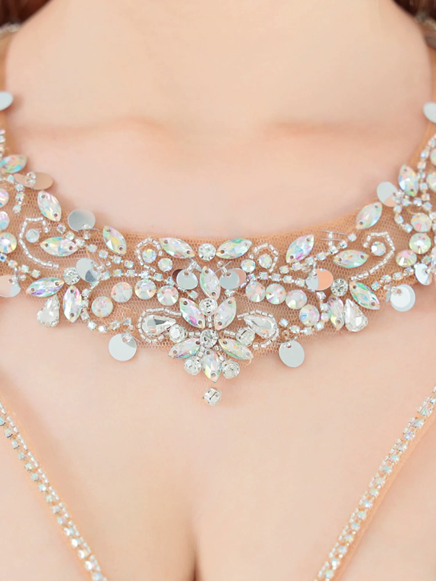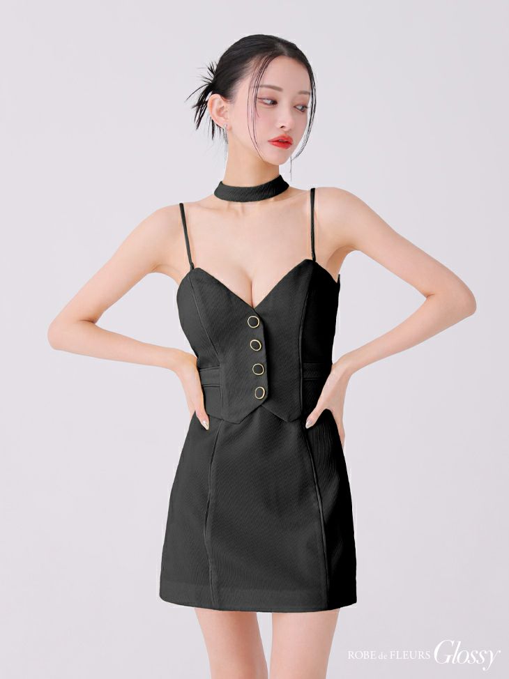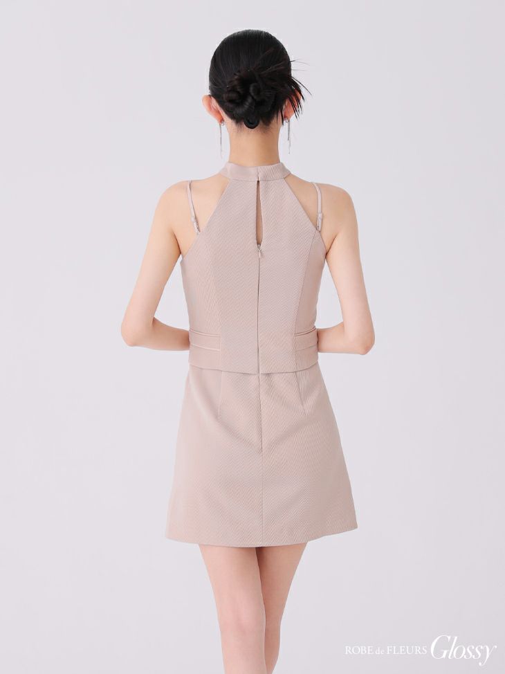 ヘルシーな肌見せに視線釘付け♡ 予約商品【4月中旬入荷予定】[Angel-R/エンジェルアール] 高級 ブランド タイトミニドレス ホルターネック 谷間 フラワービジュー くびれ バストカット (めぐりっぷ着用)
