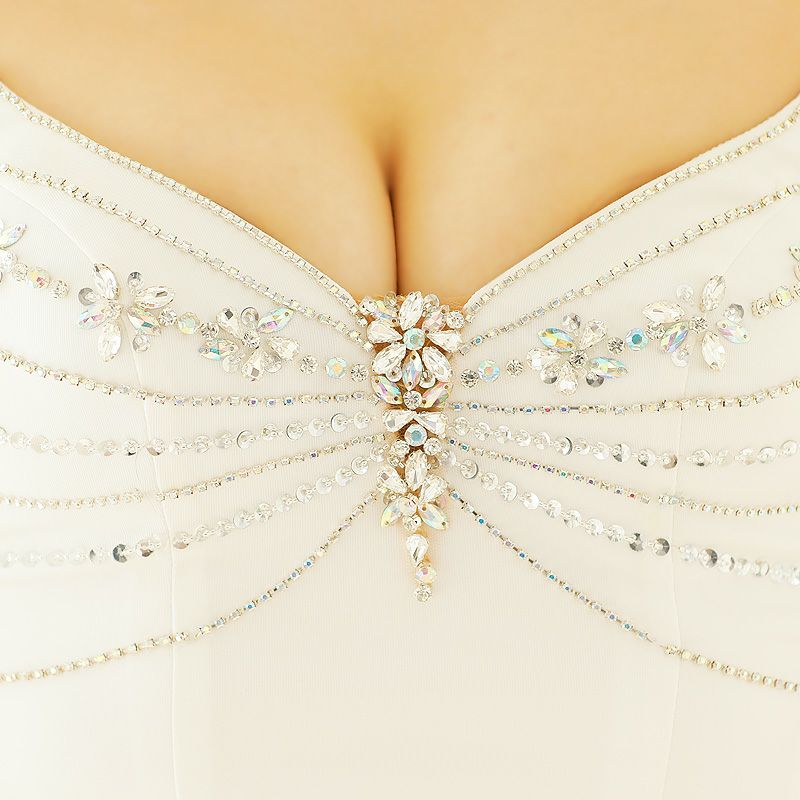 パールクロスが視線を集める☆ [Angel-R/エンジェルアール] 高級キラキラビジューラインノースリーブヌーディーくびれタイトミニドレス