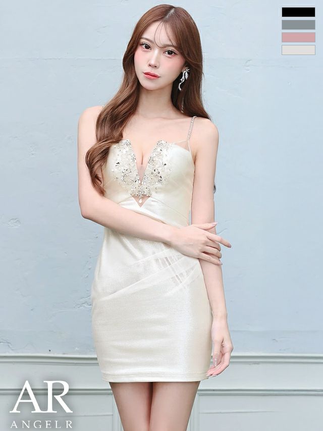散りばめられたビジューが煌めく♡ 予約商品【4月中旬入荷予定】[Angel-R/エンジェルアール] 高級 ブランド タイトミニドレス 谷間 ベア ハートカット バストタック ビジュー リボンチョーカー付き