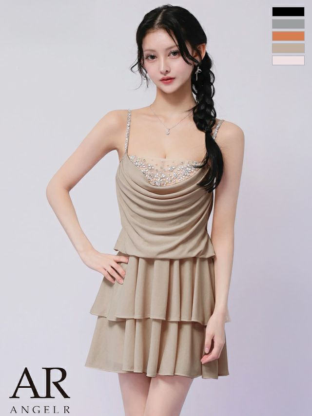 スタイルアップを狙える1着♡ 予約商品【4月上旬入荷予定】[Angel-R/エンジェルアール] 高級 ブランド フレアミニドレス 谷間 セットアップ ベア キャミソール 2way ジップ ハートカット フリル ワンカラー