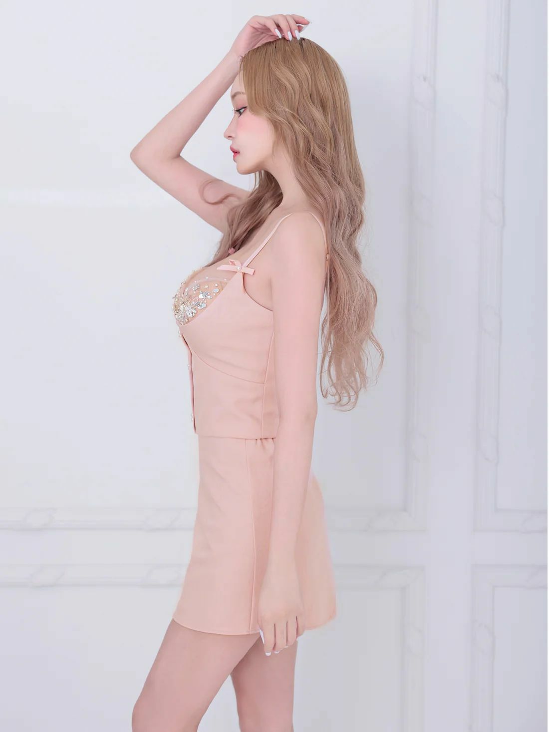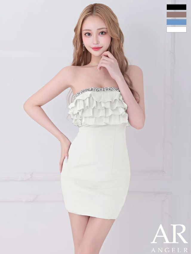 フェミニンさと色気を両立♡ 予約商品【4月中旬入荷予定】[Angel-R/エンジェルアール] 高級 ブランド タイトミニドレス キャミソール 2way ベアデザイン バストギャザー ハートカット ラメ ビジュー 背中魅せ (れむ着用)