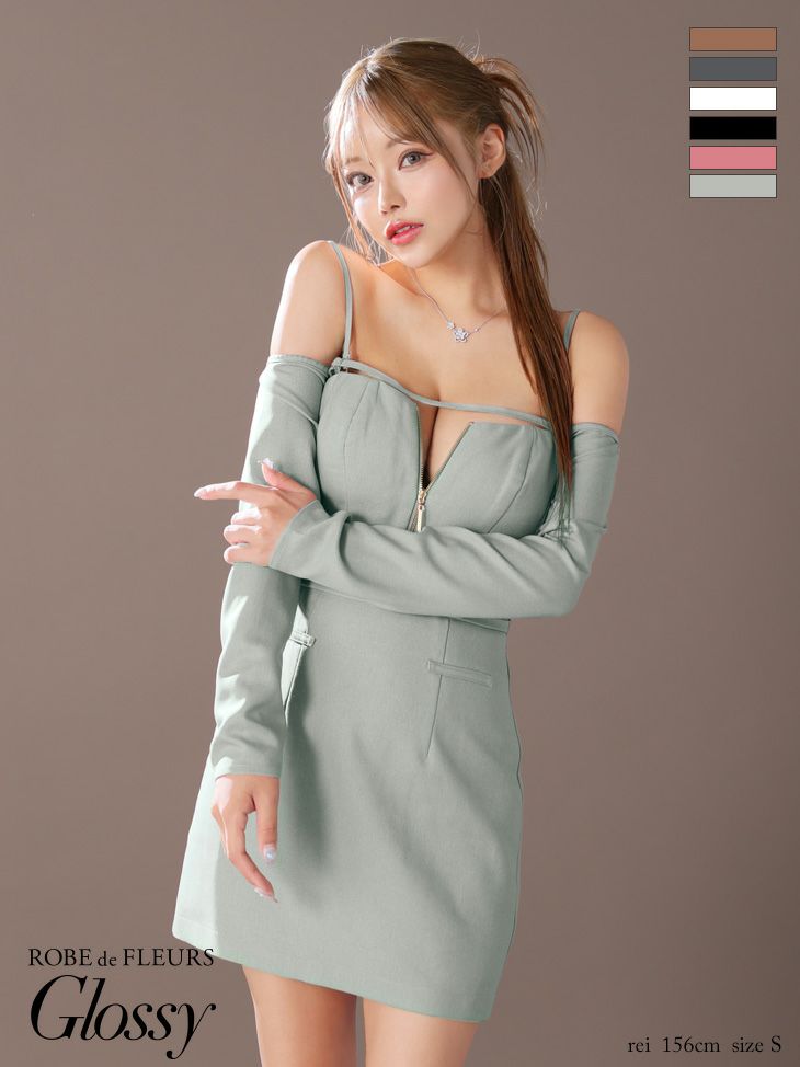 綺麗でセクシーにデコルテ強調オフショルミニドレス