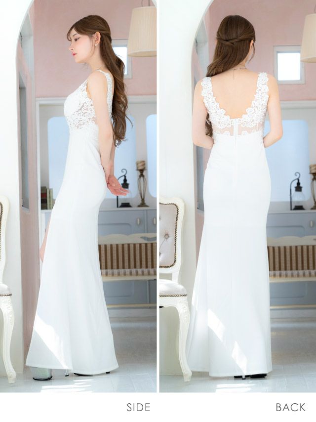 他の画像を見る シンプルながらも華やかな1着☆ タイト ロングドレス 谷間 シンプル 大きいサイズ レース 大人 スリット ノースリーブ 背中魅せ ストレッチ (みりちゃむ着用) ¥ 13,200 税込 お気に入りに追加